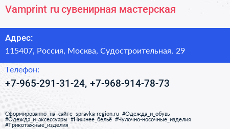 Vamprint.ru, сувенирная мастерская по адресу 115407, Россия, Москва, Судостроительная, 29 в дальнейшем Организация, размещена в следующих категориях:
