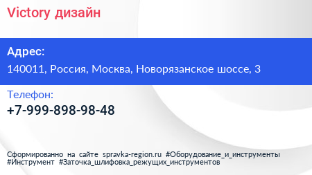 Victory дизайн по адресу 140011, Россия, Москва, Новорязанское шоссе, 3 в дальнейшем Организация, размещена в следующих категориях: