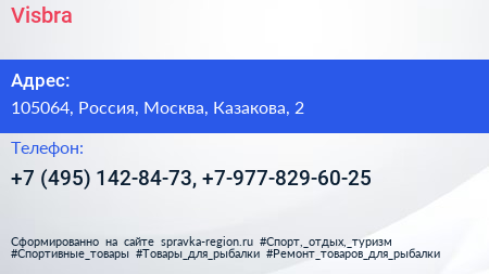 Visbra по адресу 105064, Россия, Москва, Казакова, 2 в дальнейшем Организация, размещена в следующих категориях:
