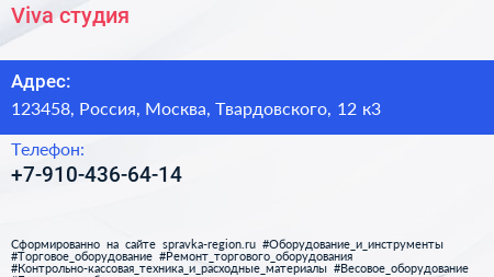 Viva, студия по адресу 123458, Россия, Москва, Твардовского, 12 к3 в дальнейшем Организация, размещена в следующих категориях: