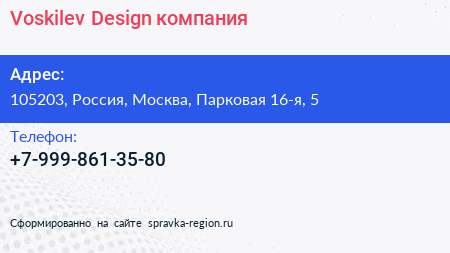 Voskilev Design, компания по адресу 105203, Россия, Москва, Парковая 16-я, 5 в дальнейшем Организация, размещена в следующих категориях: