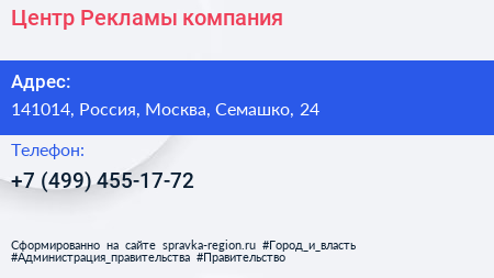 Центр Рекламы, компания по адресу 141014, Россия, Москва, Семашко, 24 в дальнейшем Организация, размещена в следующих категориях: