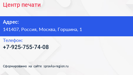 Центр печати по адресу 141407, Россия, Москва, Горшина, 1 в дальнейшем Организация, размещена в следующих категориях: