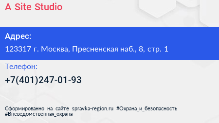 A-Site Studio по адресу 123317 г. Москва, Пресненская наб., 8, стр. 1 в дальнейшем Организация, размещена в следующих категориях:
