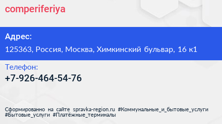 @comperiferiya по адресу 125363, Россия, Москва, Химкинский бульвар, 16 к1 в дальнейшем Организация, размещена в следующих категориях: