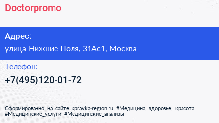 Doctorpromo по адресу улица Нижние Поля, 31Ас1, Москва в дальнейшем Организация, размещена в следующих категориях: