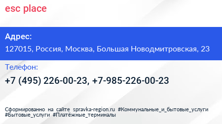 esc-place по адресу 127015, Россия, Москва, Большая Новодмитровская, 23 в дальнейшем Организация, размещена в следующих категориях: