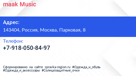maak Music по адресу 143404, Россия, Москва, Парковая, 8 в дальнейшем Организация, размещена в следующих категориях: