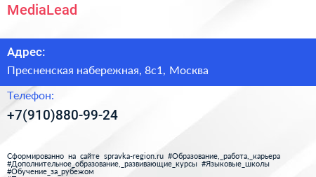 MediaLead по адресу Пресненская набережная, 8с1, Москва в дальнейшем Организация, размещена в следующих категориях: