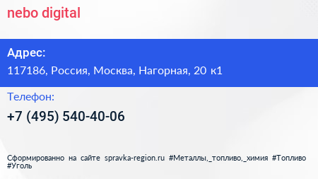 nebo digital по адресу 117186, Россия, Москва, Нагорная, 20 к1 в дальнейшем Организация, размещена в следующих категориях: