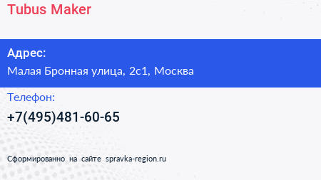 Tubus-Maker по адресу Малая Бронная улица, 2с1, Москва в дальнейшем Организация, размещена в следующих категориях: