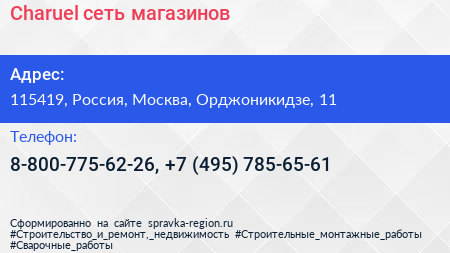 Charuel, сеть магазинов по адресу 115419, Россия, Москва, Орджоникидзе, 11 в дальнейшем Организация, размещена в следующих категориях: