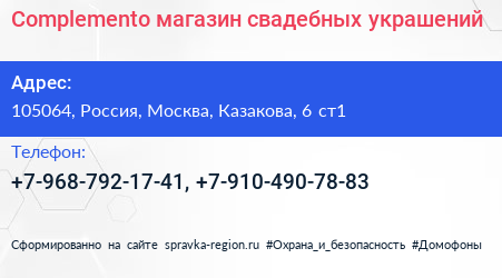 Complemento, магазин свадебных украшений по адресу 105064, Россия, Москва, Казакова, 6 ст1 в дальнейшем Организация, размещена в следующих категориях:
