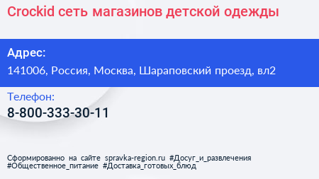 Crockid, сеть магазинов детской одежды по адресу 141006, Россия, Москва, Шараповский проезд, вл2 в дальнейшем Организация, размещена в следующих категориях: