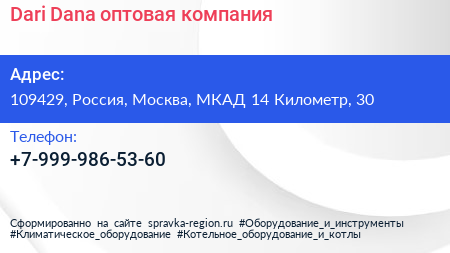 Dari Dana, оптовая компания по адресу 109429, Россия, Москва, МКАД 14 Километр, 30 в дальнейшем Организация, размещена в следующих категориях:
