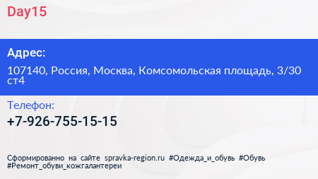 Day15 по адресу 107140, Россия, Москва, Комсомольская площадь, 3/30 ст4 в дальнейшем Организация, размещена в следующих категориях: