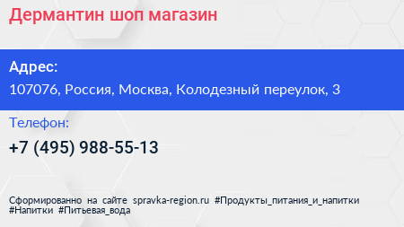 Дермантин-шоп, магазин по адресу 107076, Россия, Москва, Колодезный переулок, 3 в дальнейшем Организация, размещена в следующих категориях: