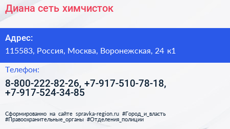 Диана, сеть химчисток по адресу 115583, Россия, Москва, Воронежская, 24 к1 в дальнейшем Организация, размещена в следующих категориях: