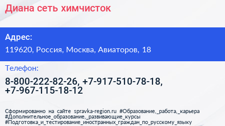 Диана, сеть химчисток по адресу 119620, Россия, Москва, Авиаторов, 18 в дальнейшем Организация, размещена в следующих категориях: