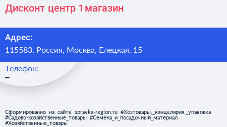 Дисконт-центр №1, магазин по адресу 115583, Россия, Москва, Елецкая, 15 в дальнейшем Организация, размещена в следующих категориях:
