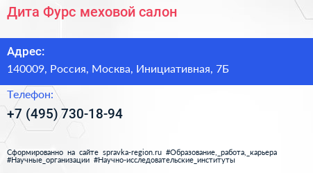 Дита Фурс, меховой салон по адресу 140009, Россия, Москва, Инициативная, 7Б в дальнейшем Организация, размещена в следующих категориях: