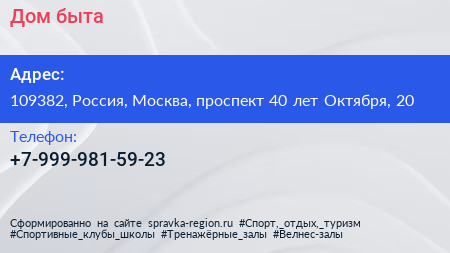 Дом быта по адресу 109382, Россия, Москва, проспект 40 лет Октября, 20 в дальнейшем Организация, размещена в следующих категориях: