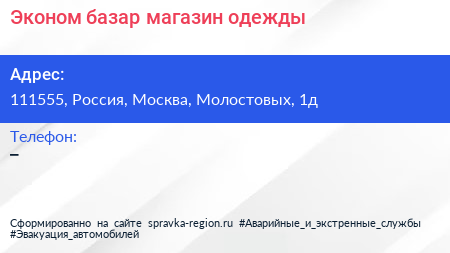 Эконом базар, магазин одежды по адресу 111555, Россия, Москва, Молостовых, 1д в дальнейшем Организация, размещена в следующих категориях: