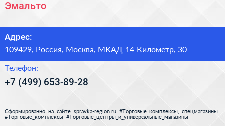 Эмальто по адресу 109429, Россия, Москва, МКАД 14 Километр, 30 в дальнейшем Организация, размещена в следующих категориях: