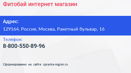 Фитобай, интернет-магазин по адресу 129164, Россия, Москва, Ракетный бульвар, 16 в дальнейшем Организация, размещена в следующих категориях:
