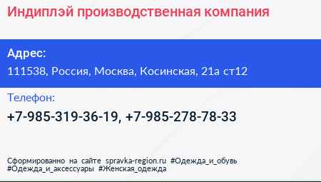 Индиплэй, производственная компания по адресу 111538, Россия, Москва, Косинская, 21а ст12 в дальнейшем Организация, размещена в следующих категориях: