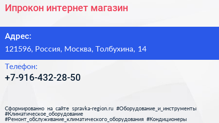 Ипрокон, интернет-магазин по адресу 121596, Россия, Москва, Толбухина, 14 в дальнейшем Организация, размещена в следующих категориях: