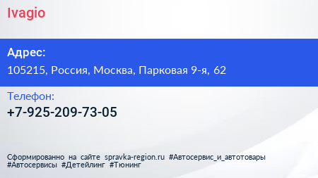 Ivagio по адресу 105215, Россия, Москва, Парковая 9-я, 62 в дальнейшем Организация, размещена в следующих категориях: