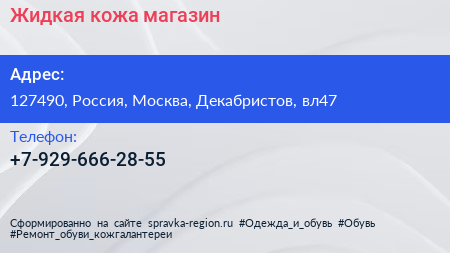 Жидкая кожа, магазин по адресу 127490, Россия, Москва, Декабристов, вл47 в дальнейшем Организация, размещена в следующих категориях: