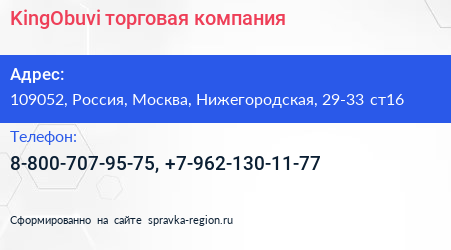 KingObuvi, торговая компания по адресу 109052, Россия, Москва, Нижегородская, 29-33 ст16 в дальнейшем Организация, размещена в следующих категориях: