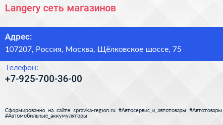 Langery, сеть магазинов по адресу 107207, Россия, Москва, Щёлковское шоссе, 75 в дальнейшем Организация, размещена в следующих категориях: