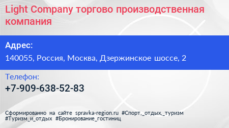 Light Сompany, торгово-производственная компания по адресу 140055, Россия, Москва, Дзержинское шоссе, 2 в дальнейшем Организация, размещена в следующих категориях: