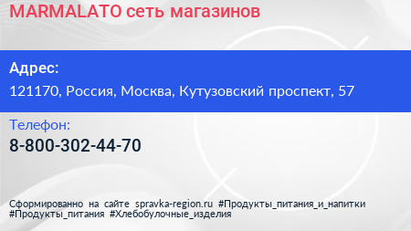 MARMALATO, сеть магазинов по адресу 121170, Россия, Москва, Кутузовский проспект, 57 в дальнейшем Организация, размещена в следующих категориях: