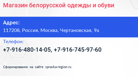 Магазин белорусской одежды и обуви по адресу 117208, Россия, Москва, Чертановская, 9а в дальнейшем Организация, размещена в следующих категориях: