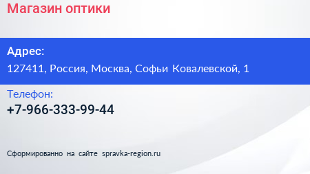 Магазин оптики по адресу 127411, Россия, Москва, Софьи Ковалевской, 1 в дальнейшем Организация, размещена в следующих категориях:
