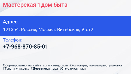 Мастерская №1, дом быта по адресу 121354, Россия, Москва, Витебская, 9 ст2 в дальнейшем Организация, размещена в следующих категориях: