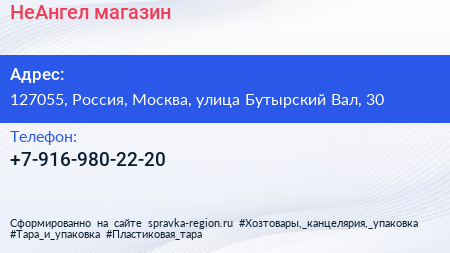 НеАнгел, магазин по адресу 127055, Россия, Москва, улица Бутырский Вал, 30 в дальнейшем Организация, размещена в следующих категориях: