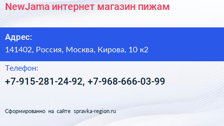 NewJama, интернет-магазин пижам по адресу 141402, Россия, Москва, Кирова, 10 к2 в дальнейшем Организация, размещена в следующих категориях: