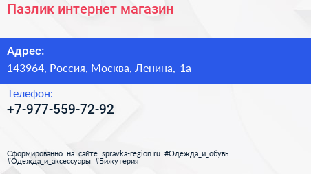 Пазлик, интернет-магазин по адресу 143964, Россия, Москва, Ленина, 1а в дальнейшем Организация, размещена в следующих категориях: