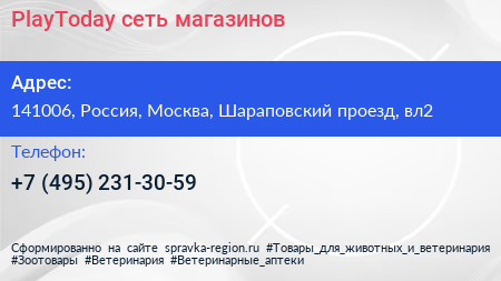 PlayToday, сеть магазинов по адресу 141006, Россия, Москва, Шараповский проезд, вл2 в дальнейшем Организация, размещена в следующих категориях:
