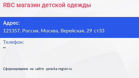 RBC, магазин детской одежды по адресу 121357, Россия, Москва, Верейская, 29 ст33 в дальнейшем Организация, размещена в следующих категориях: