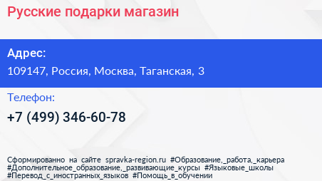 Русские подарки, магазин по адресу 109147, Россия, Москва, Таганская, 3 в дальнейшем Организация, размещена в следующих категориях: