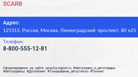 SCARB по адресу 125315, Россия, Москва, Ленинградский проспект, 80 к25 в дальнейшем Организация, размещена в следующих категориях: