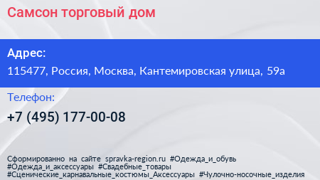 Самсон, торговый дом по адресу 115477, Россия, Москва, Кантемировская улица, 59а в дальнейшем Организация, размещена в следующих категориях: