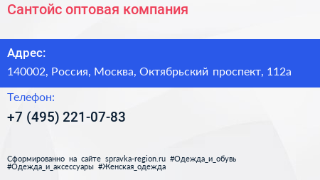 Сантойс, оптовая компания по адресу 140002, Россия, Москва, Октябрьский проспект, 112а в дальнейшем Организация, размещена в следующих категориях: