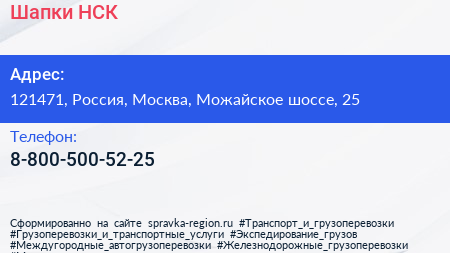 Шапки НСК по адресу 121471, Россия, Москва, Можайское шоссе, 25 в дальнейшем Организация, размещена в следующих категориях: